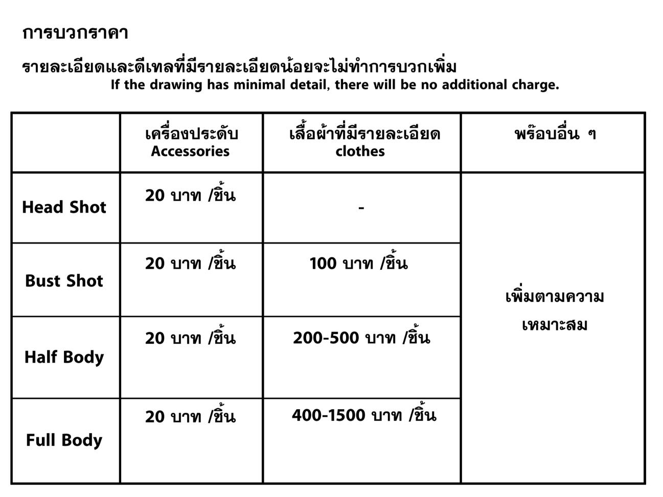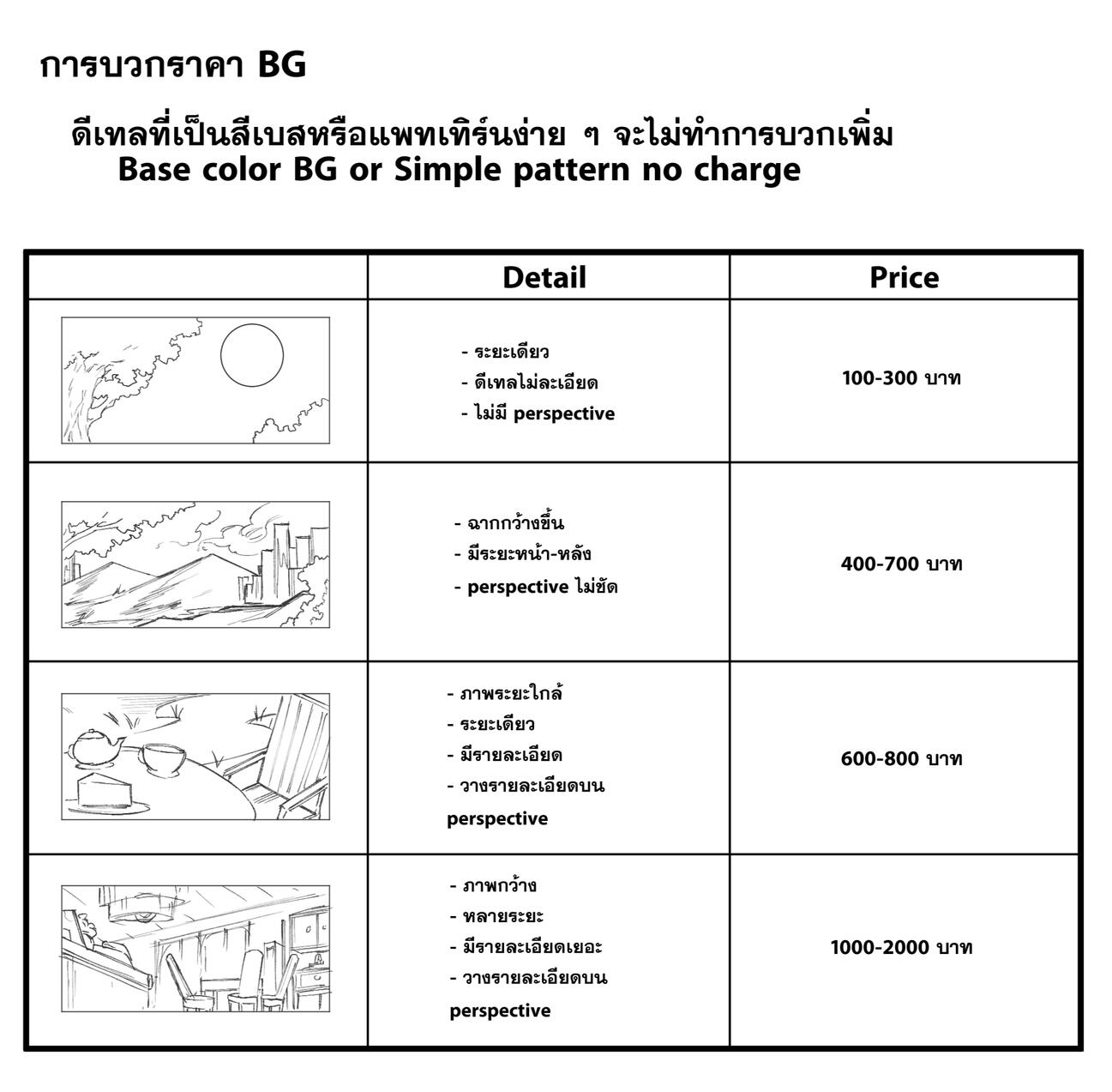 แต่หากเห็นรายละเอียดน้อยลง จะลดราคาตามความเหมาะสม ( หากเพิ่มตัวละครแต่ไม่ได้เห็นชัดเจนมาก จะไปรวมกับราคา BG ค่ะ)